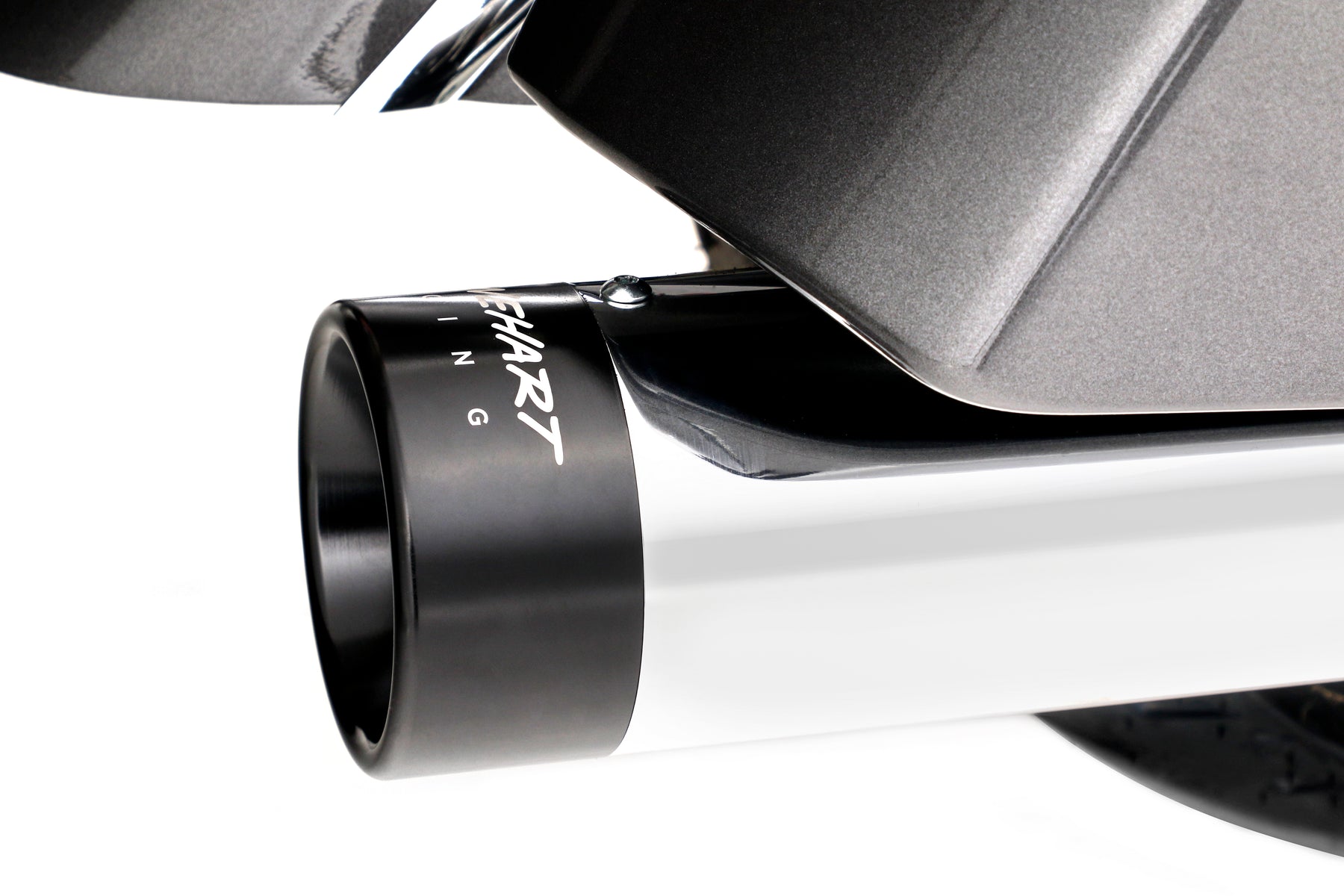 - Available in Chrome or Black mufflers with Black or Chrome end caps for a look that is unmistakably Rinehart.